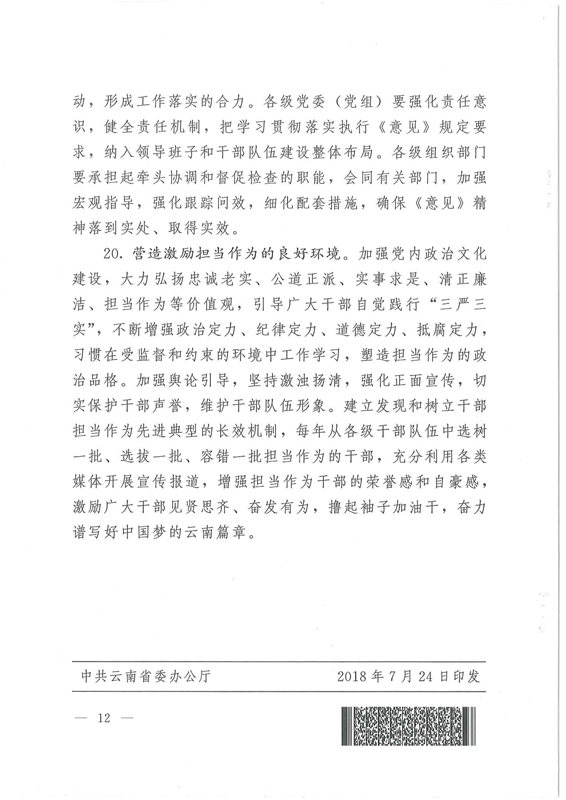 中共云南省委辦公廳印發(fā)《關(guān)于進一步激勵廣大干部新時代新?lián)?dāng)新作為的實施意見》的通知